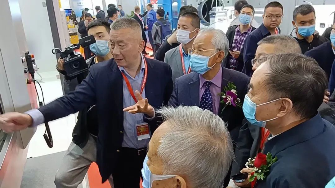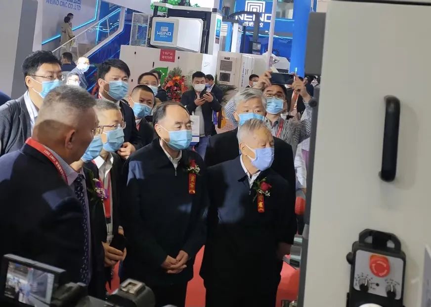 上午10時,中國機床工具工業(yè)協(xié)會執(zhí)行副理事長兼秘書長王黎明、中國機床工具工業(yè)協(xié)會監(jiān)事長王旭陪同原教育部部長、中國工程院院長周濟,原機械工業(yè)部副部長、國務(wù)院派駐國有重點大型企業(yè)監(jiān)事會原主席賈成炳等一行來到杭機展臺前,杭機股份董事長孫益民、總經(jīng)理董凱夫向各位貴賓匯報了杭機在解決航發(fā)葉片加工等卡脖子問題上取得的成果,目前這一成果已批量提供給航發(fā)用戶。周濟院長長期致力于機械設(shè)計、數(shù)控技術(shù)與智能制造的教學(xué)和研究工作,作為行業(yè)的專家,他耐心詢問杭機的發(fā)展現(xiàn)狀和產(chǎn)品結(jié)構(gòu)。賈副部長饒有興致地走近五軸數(shù)控強力成型磨床,近距離觀察機床內(nèi)部結(jié)構(gòu),孫益民董事長和董凱夫總經(jīng)理向幾位領(lǐng)導(dǎo)介紹了兩臺展品的適用范圍和產(chǎn)品性能,以及杭機目前參與的國家04專項的進展情況,幾位貴賓勉勵杭機要投入更多精力到產(chǎn)品研發(fā)上,承擔起為國內(nèi)航空航天、高精度數(shù)控機床功能部件及能源裝備中的關(guān)鍵零部件的高精、高效加工的企業(yè)責任。